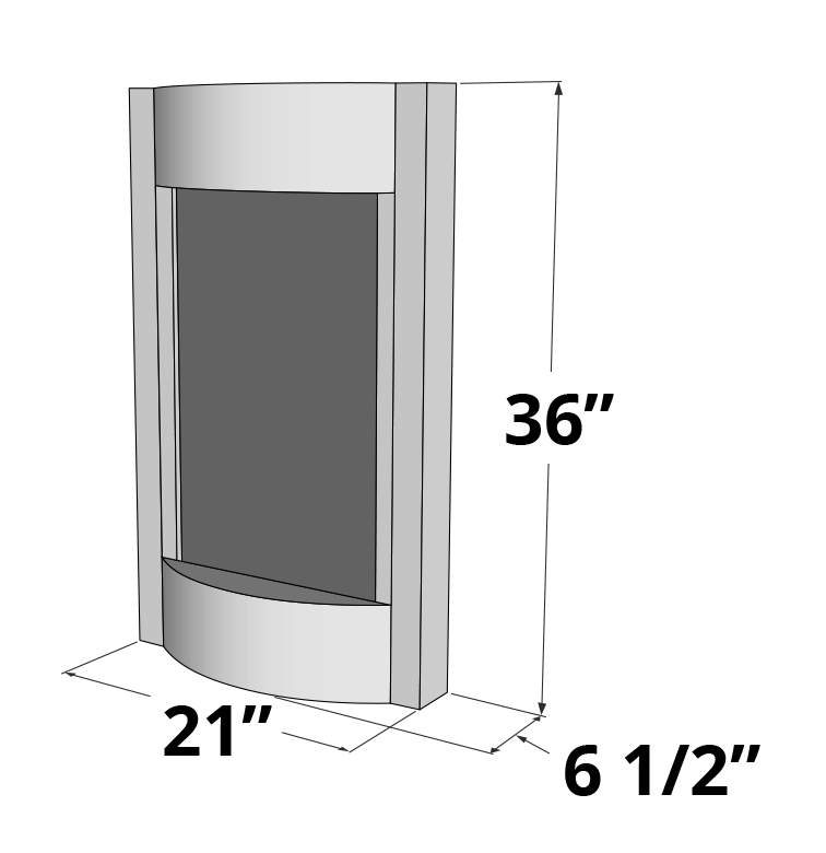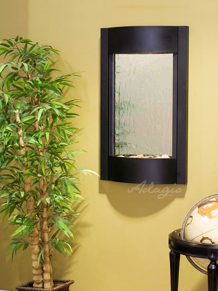 The Adagio Serene Waters wall fountain brings the calming sound of flowing water and a refined stone or glass surface to homes and offices. At 36" tall by 21" wide and 6" deep, it is designed for compact spaces while still providing an elegant focal point. The unit ships with an EZ mount bracket for straightforward installation and includes a halogen light to softly illuminate the water flow.