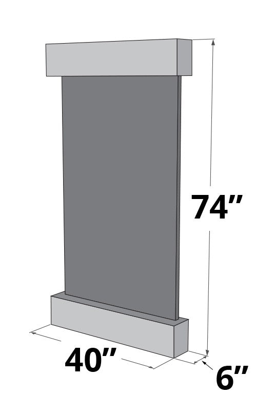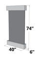 The Adagio Summit Falls is a tall, wall-mounted indoor fountain designed for large interiors. At 74" high and 40" wide, it combines a natural stone or glass surface with a watertight tray, polished river rocks, and integrated lighting to add quiet water movement and a calming focal point to a lobby, office or home space. It ships with an EZ installation bracket for straightforward mounting.